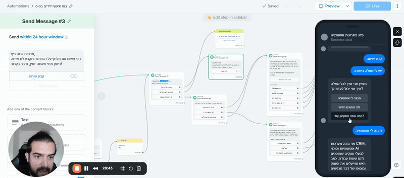 בניית סוכנים וצ׳טבוטים שיכולים להחליף כל מזכירה: מתאמי פגישות, שולחים תזכורות אוטומטיות מדברות עם לידים ועוד עשרות פעולות.